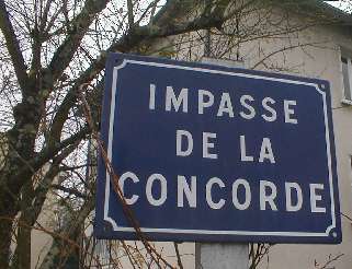 Peu importe la commune où cette plaque a été photographiée. N'est ce pas la plaque universelle par excellence ? "L'impasse de la Concorde" caractérise malheureusement tous les lieux et toutes les époques...