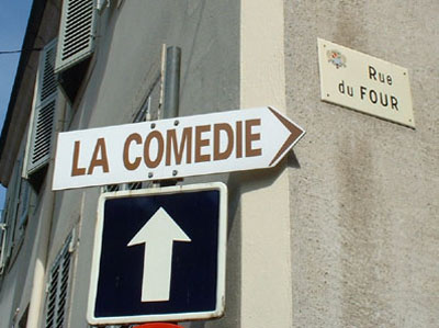 Cette photo a été prise en 2004 à Lons le Saunier dans le Jura. Est-il bien raisonnable de flécher "la Comédie" en direction de la rue du Four ? :-)