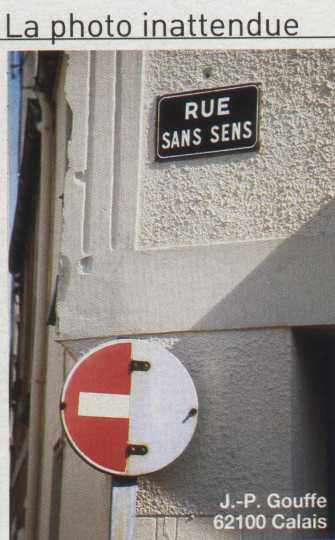 Cette "rue sans sens" a été photographiée à Etables-sur-Mer dans les Côtes d'Armor. Déjà publiée dans le magazine "Maxi", elle est reproduite avec l'aimable autorisation de son auteur.