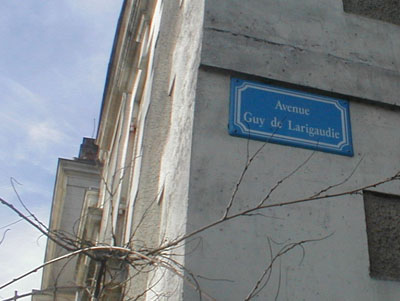 La Plaque du Jour a été photographiée à Ribérac, en Dordogne. Je possède le livre de Guy de Larigaudie retraçant son périple Paris-Saïgon. Je l'ai trouvé par hasard au cours de l'été 2003 chez un bouquiniste des quais de Seine à Paris.