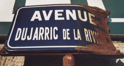 Ni sale, ni vétuste, ni vandalisée, cette plaque photographiée en octobre 2002 à Thiviers (24), a vraisemblablement été victime d'un accrochage déjà ancien. Je n'ai rien pu faire pour elle !