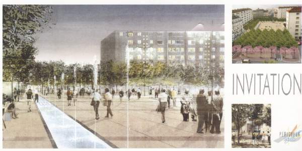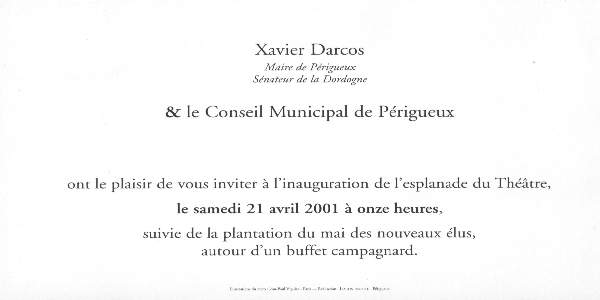 Traditionnel ? Pas tant que celà. Le verso du bristol est orné d'une maquette de l'esplanade à inaugurer conçue par Jean-Paul Viguier, l'un des plus grands architectes contemporains.