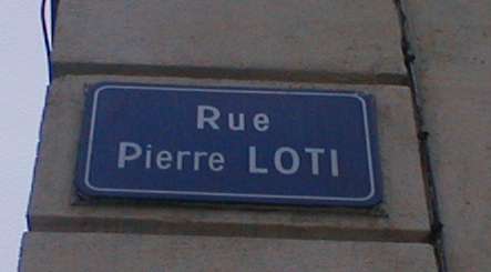 La plaque de rue a été photographiée dans sa ville natale, Rochefort sur Mer, ou Pierre Loti est omniprésent. Elle est pourtant ici comme toutes les plaques de la rue qui lui est consacrée au cœur de la ville, passant devant l’Hôtel de Ville même, non légendée.