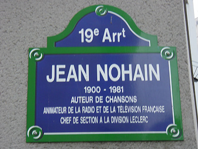 La Plaque du Jour a été photographiée à Paris par Frédéric, un ami internaute, et présente la particularité, pour ne pas dire l'anomalie d'ignorer le terme générique de la voie qui lui est consacrée à Paris ! Il s'agit d'une rue, modeste. Tout autant que distrait, Jean Nohain l'était aussi.