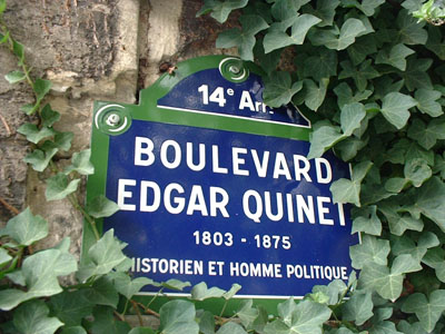 Le philosophe Edgar Quinet, homme politique et historien, est décédé le 27 mars 1875. Homme intègre et de convictions, il paiera son intransigeance, son esprit réfractaire aux compromis, jusque dans la mort: Le gouvernement lui refuse des funérailles nationales. Il aura plus. Le peuple en masse suivit son enterrement, et c'est Gambetta qui prononça, le 29 mars 1875, en compagnie de Victor Hugo, son éloge funèbre. Il repose au cimetière Montparnasse, et l'un des boulevards qui longe cette vaste nécropole porte son nom.